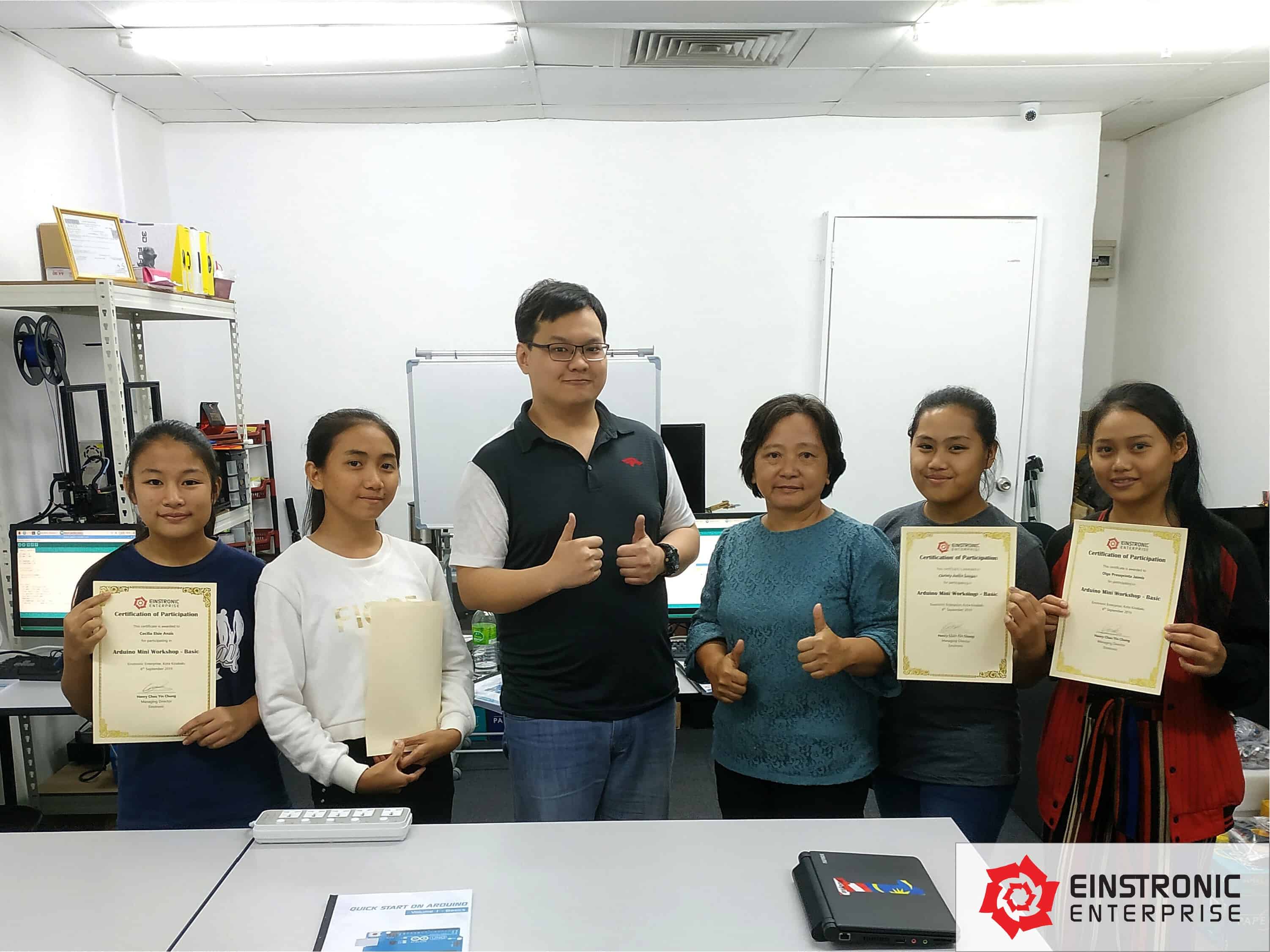 We feel appreciated to organize this mini workshop for high-school students from SMK Desa Wawasan Tambunan, Sabah, to teach how-to make Arduino program works and provide the necessary Arduino components for them to do hands-on activities.